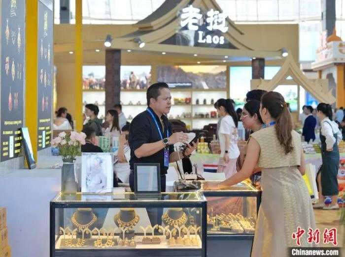 2025年5月9日,第二届湖南(怀化)RCEP经贸博览会在湖南怀化开幕。图为消费者在泰国展厅选购珠宝。