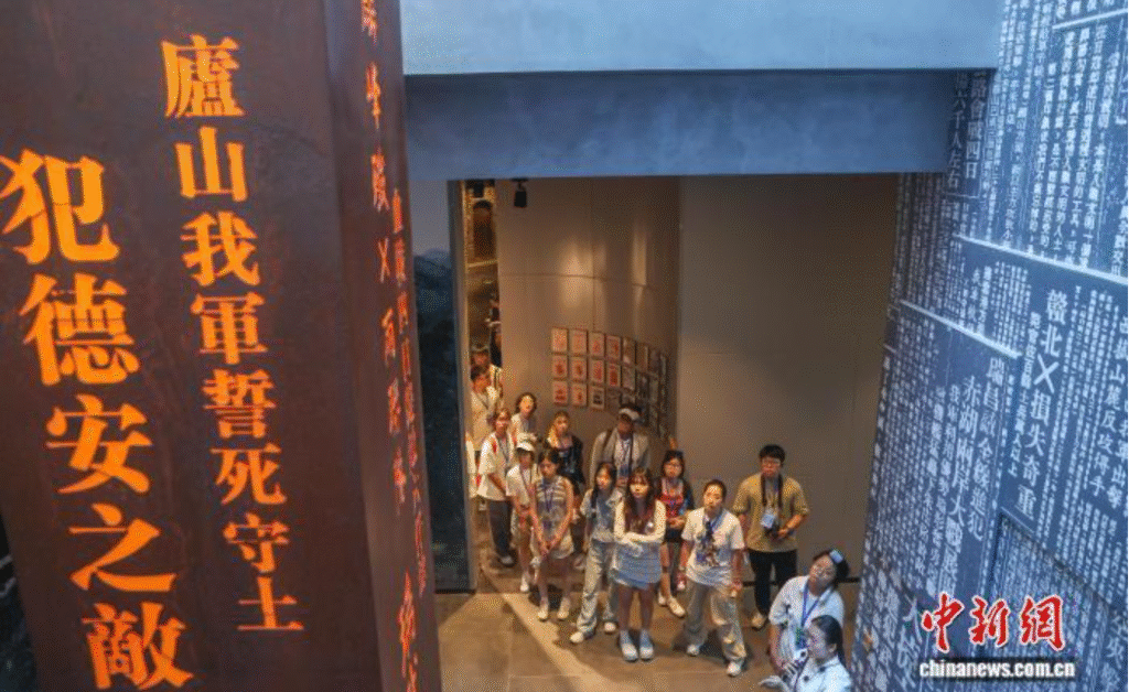 8月20日,江西庐山抗战博物馆内,两岸黄埔后代、高校学生追寻抗战记忆。