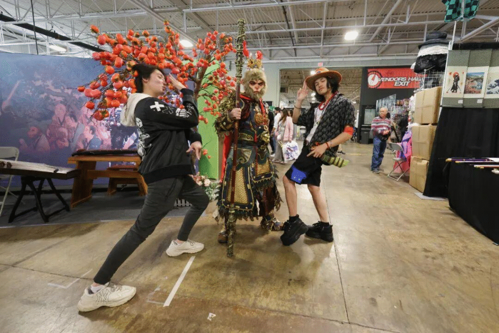 当地时间2025年5月25日,加拿大多伦多,在北美动漫节上,一位动漫coser(角色扮演者)以中国国产游戏《黑神话:悟空》的悟空形象现身,吸引动漫迷合影。