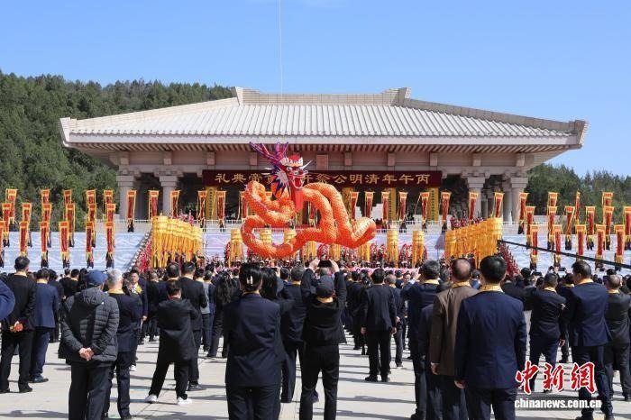 4月5日,丙午(2026)年清明公祭轩辕黄帝典礼在陕西省延安市黄陵县桥山祭祀广场举行。中新社记者 梅镱泷 摄
