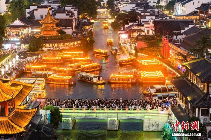 南京夫子庙、西安大唐不夜城、杭州西湖、敦煌月牙泉等景区人头攒动,熙熙攘攘——游客或身着汉服古装轻步缓行,或乘乌篷船在吱呀声中摇橹河上,这是抚今追昔、走马逍遥的体验。