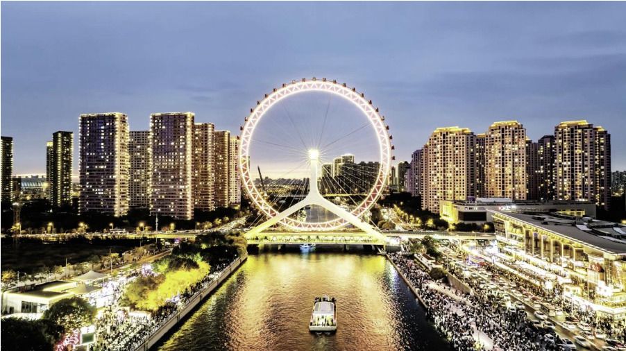 “六大节点”串联起海河两岸的观光带,从3种视角快速打开海河两岸风景:从陆上,可以沿河岸乘车或坐观光巴士;从水上,自然是乘坐海河游船;从空中,有“天津之眼”摩天轮和新推出的“天津之心”津塔观光层。近期,“海河之夜”灯光秀将常态化点亮,将海河上的桥梁、沿岸的建筑、码头绘入城市夜景长卷,讲述着中国与世界、历史与未来的故事。