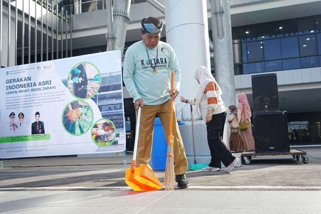 [丹戎塞洛尔讯] 北加里曼丹省省长扎伊纳尔·A·帕利旺与公务员们(ASN)一同开展了一项环保倡议,举行了大规模清洁活动,这是“美丽的印度尼西亚”(ASRI,即安全、健康、整洁、美丽)运动的一部分。
