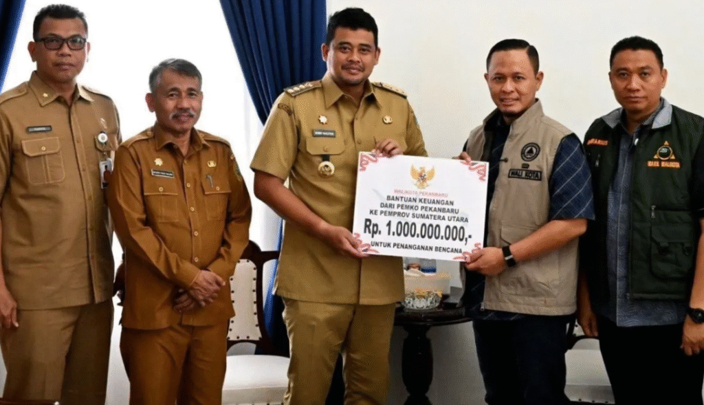 他从廖内省北干巴鲁市政府获得了现金和物资援助,并由北干巴鲁市长阿贡·努格罗霍直接交付。