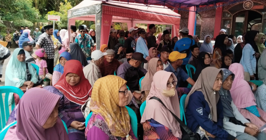 放财产天课,每人获得50万印尼盾的援助。