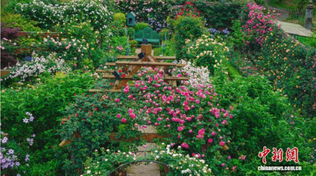 在浙江丽水松阳县白露岭,有一处欧式田园风的叶子花园民宿,由西班牙华侨王超杰和妻子叶伟兰建立。夫妻二人近日接受记者电话采访时说,这里有1000多个品种的近2万株植物,一年四季都有花开。“这里曾是一片荒地,经过数年土壤改良与花苗培育,我们打造了绣球园、玫瑰园、枫叶园等6座主题花园。”