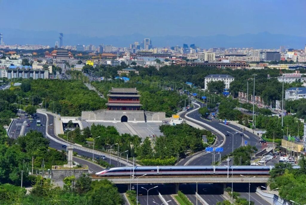 复兴号CR400AF动车组穿越北京中轴线。中车四方供图