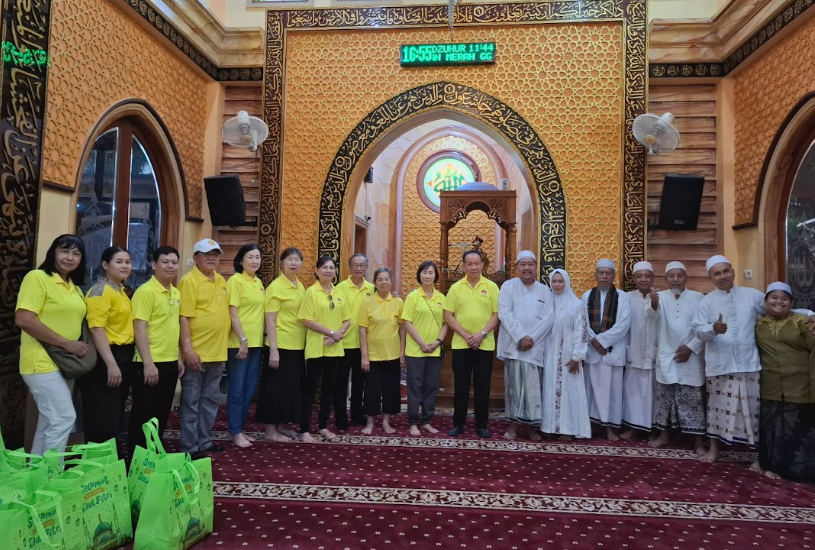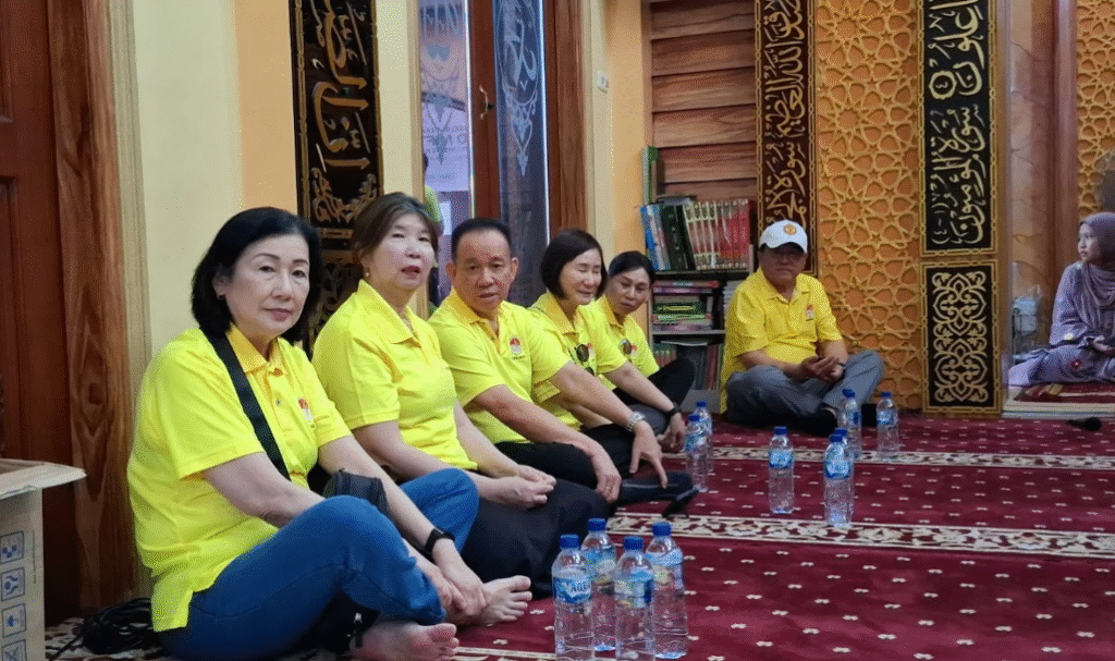 在活动中,印尼东爪哇江夏堂黄氏宗亲会向清真寺信众、清洁人员以及清真寺管理人员发