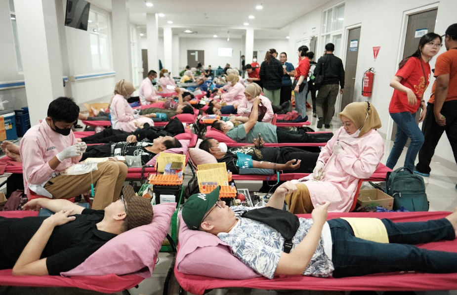 活动当天,三宝垄华联与三宝垄市及格洛博干县红十字会(PMI)输血单位密切合作