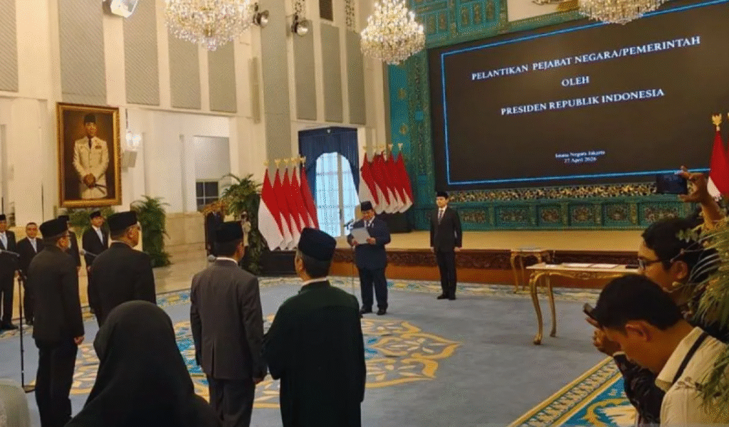 【雅加达讯】2026年4月27日星期一,印尼总统普拉博沃·苏比安托在雅加达国务宫正式任命数位新官员,以填补红白内阁内的战略职位。此次任命是基于同日发布的数项总统令进行的。