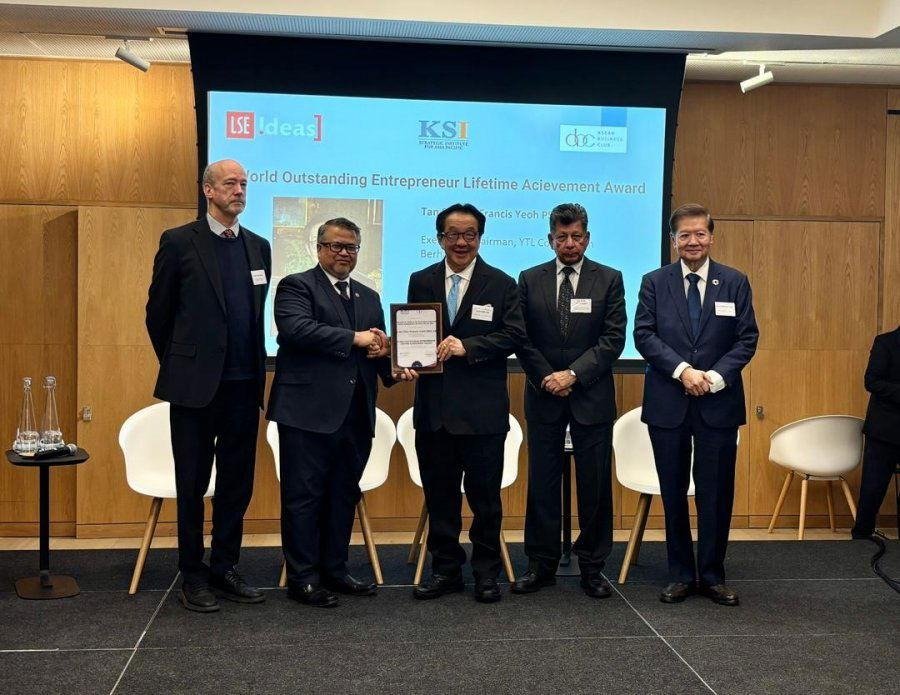 (吉隆坡30日讯)杨忠礼机构董事经理丹斯里杨肃斌,在伦敦经济政治学院举办的“英国—东盟商业卓越奖”中,获得亚太策略研究院和东盟商务俱乐部联合颁发“世界杰出企业家终身成就奖”,以表彰其在企业经营、区域发展及长期价值创造方面的卓越贡献。