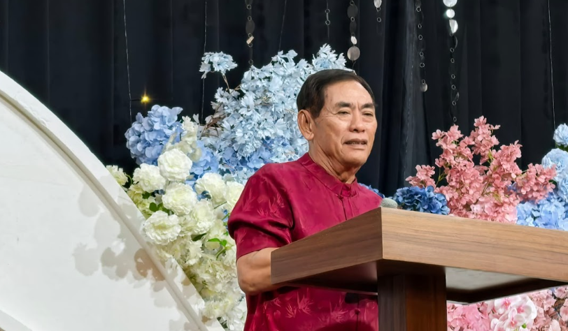 公会前任主席李远秋致词,祝贺乡亲们新年进步、万事如意,财源广进,年年有余。