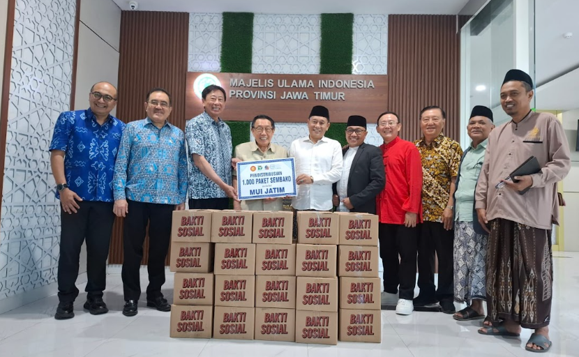 接着,1,000份基本食品包裹移交给了东爪哇印尼伊斯兰学者理事会(MUI),由东爪哇