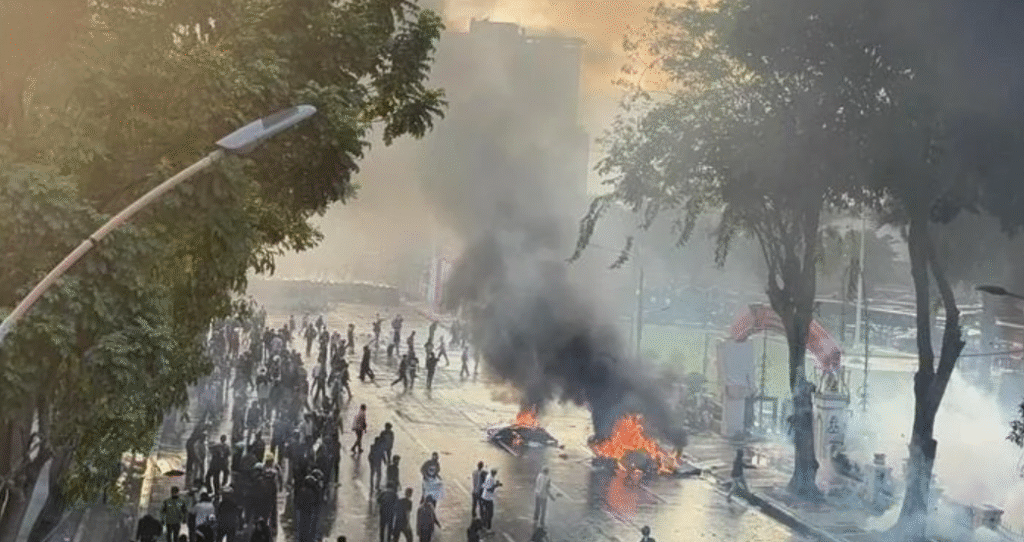 【泗水讯】因声援网约车司机阿凡·库尔尼亚万(21岁)之死而举行的示威在泗水格拉哈迪大楼演变为骚乱,警方逮捕约40名示威者,目前仍被关押在泗水市警署。阿凡此前在雅加达国会大厦外的抗议中遭机动旅装甲车碾压身亡,引发各地连锁抗议。