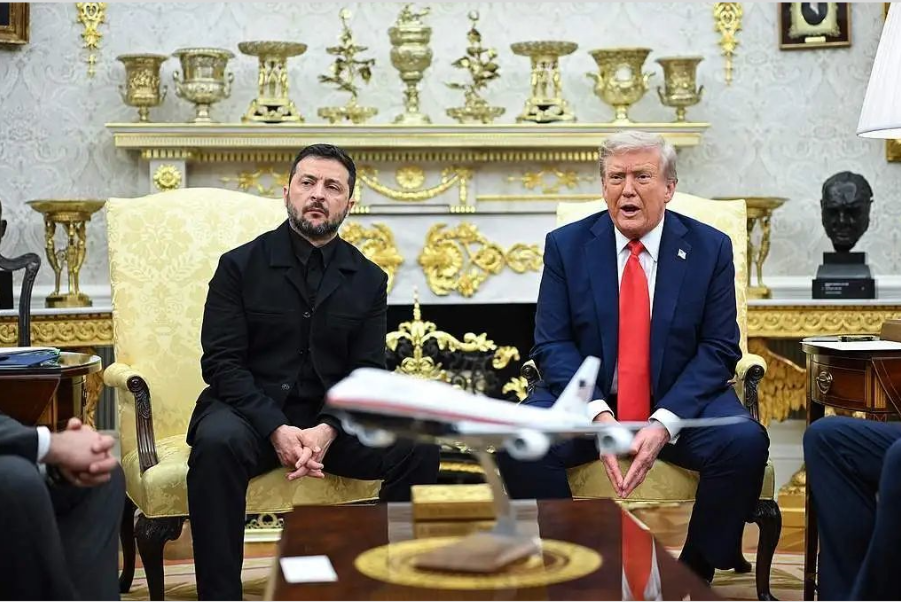 当天,特朗普与泽连斯基先在白宫椭圆形办公室举行超过1小时双边会谈。之后,特朗普、泽连斯基和欧洲领导人在白宫东厅举行会谈,会谈时长超过3小时。