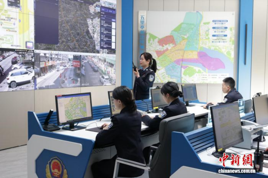 五里亭派出所综合指挥室。雷美玲 摄