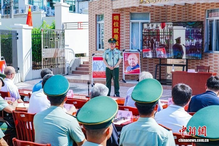 2025年10月8日,武警广东总队深圳第二支队大校政治委员陈宏懋致辞欢迎钱学森之子钱永刚重温回国历程。