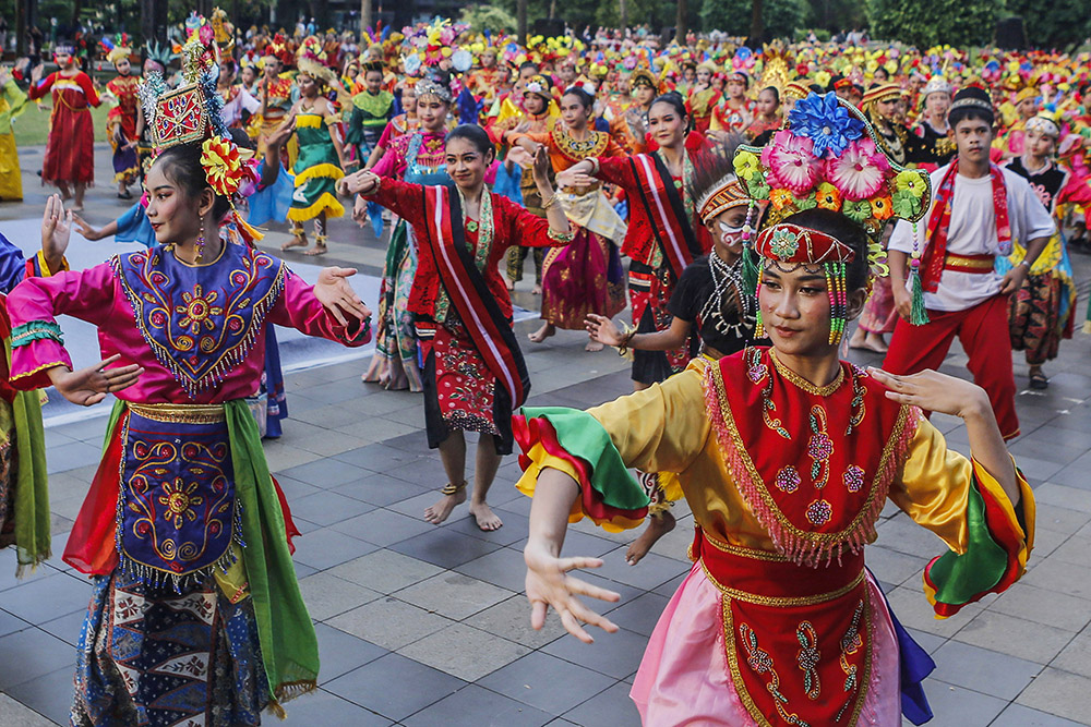【雅加达讯】美丽印尼缩影公园(Taman Mini Indonesia Indah,简称TMII)以”文化传承永不停歇”为主题,呈现来自印尼34个省的1,000名舞者表演,旨在打破印尼纪录博物馆(MURI)的纪录,庆祝其51周年华诞。