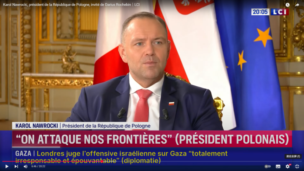 澎湃新闻在油管视频网站(YouTube)观看了LCI的这档节目,纳夫罗茨基在节目中称,波兰正在加大国防开支,并联合北约其他国家采取一系列行动来增强威慑力。面对主持人对有关“波兰是否愿意法国核武器进驻波兰”和“波兰自身发展核潜力”等问题的提问,纳夫罗茨基回应称,这是一个“非常复杂”的问题,波兰与法国在民用核能的合作对波兰应对外界威胁十分重要,波兰愿意参与核共享计划,波兰和法国正在商讨相关事宜。不过,纳夫罗茨基表示,现在谈论“波兰自身发展核武器”的话题还“为时尚早”,波兰寄希望于自己军队和盟友的支持来维护自身安全。