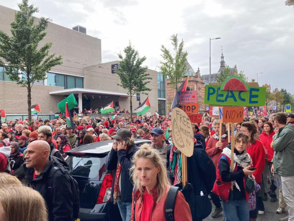 这是今年以来荷兰举行的第三次大规模呼吁结束加沙暴力冲突的示威活动,前两次均在海牙举行。(朱曦莉/央视新闻)