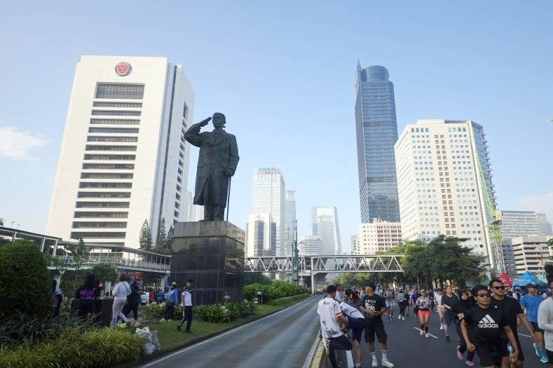 资料图片:2025年8月3日,民众在印度尼西亚首都雅加达“无车日”活动上参加锻炼。中新社记者 李志全 摄