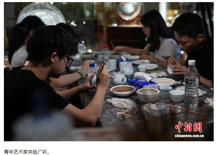 青年艺术家们还拜访了广彩大师谭广辉,深入了解广彩瓷烧制技艺背后的深厚文化内涵,并围绕传统技艺与现代艺术创新融合展开了深度交流。