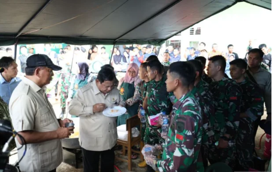 18日,普拉博沃总统在西苏门答腊一处灾民避难所,与避难的居民和士兵一起享用一顿简单的早餐——炒饭,展现了其在视察应急救援工作中的务实作风和亲民领导力。