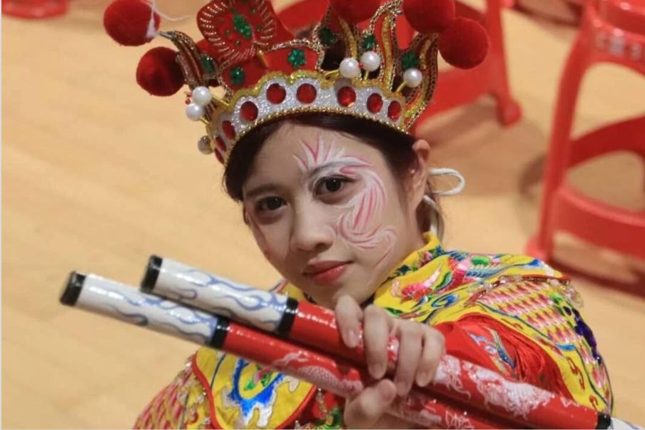 在今年汕头大学数计学院和医学院的毕业晚会上,都有马来西亚华裔学生庞琪蕊的身影。她身着英歌舞服,随鼓点挥动铜镲,与队友默契配合,赢得台下喝彩连连。