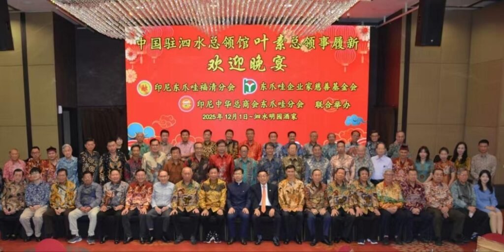12月1日,中国驻泗水总领事叶素出席印尼东爪哇福清公会、东爪哇企业家慈善基金会、印尼中华总商会东爪哇分会主办的庆祝中印尼建交75周年暨总领事履新欢迎晚宴,东爪哇省主要侨团商会代表出席。