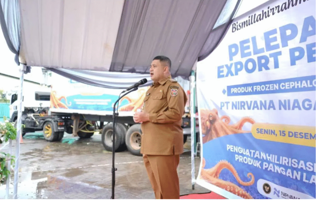 (望加锡讯)望加锡市长穆纳夫里·阿里芬正式宣布由PT Nirvana Niaga Sejahtera(NNS)公司进行的首次章鱼对日出口。
