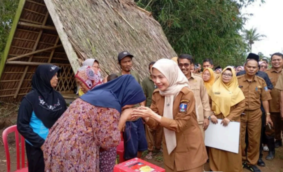 (西冷讯)西冷县(Serang)县长拉图·拉赫玛图扎基娅(Ratu Rachmatuzakiyah)向万丹省西冷县科 波区受龙卷风影响的89名居民发放了食品援助。