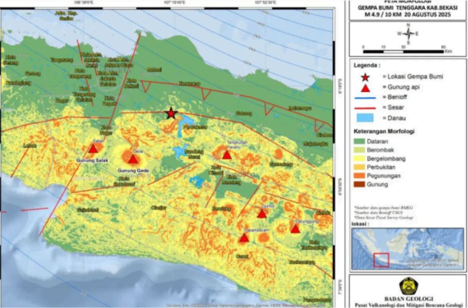[勿加泗讯]印尼能源和矿产资源部(ESDM)地质局表示,周三晚间袭击西爪哇省勿加泗、卡拉旺和勿 万加兰,并在雅加达有震感的4.7级地震,是由巴拉比斯断层活动引起的。