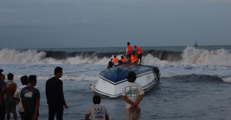 【登巴萨讯】巴厘岛海豚游轮II号快艇在即将靠岸时,于登巴萨萨努尔日出海滩附近100米处发生倾覆。