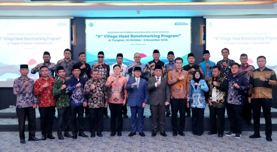 印尼乡村与落后地区发展部长(Mendes PDTT)扬德里·苏桑托(Yandri Susanto)正式 为即将前往中华人民共和国参加“村长标杆学习项目(Head Benchmarking Program)” 的21位村长举行送行仪式,并寄语他们要成为推动乡村振兴的榜样力量。