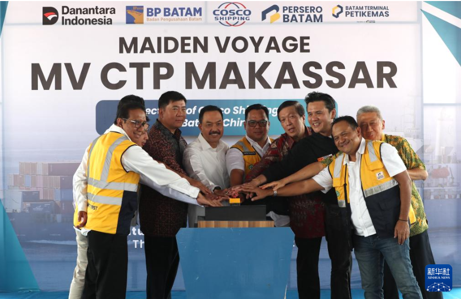 在印度尼西亚廖内群岛省巴淡岛港,伴随着船笛声,一艘集装箱货轮启航。这是中远海运集团新开辟的巴淡岛港至中国海南洋浦港直航航线的首航,标志着中国与东南亚之间的海上直连服务进一步拓展。