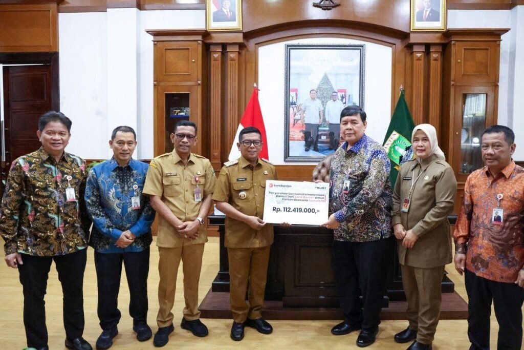 (色朗讯)万丹省地方发展银行股份有限公司向万丹省政府捐赠 112.4 亿印尼盾人道援助资金,以加强对苏门答腊多地洪灾救援工作的支持。